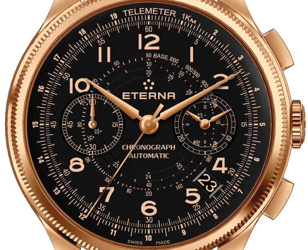 Eterna 1948 Chronograph Telemeter Bronze Manufacture jest bardzo udaną reedycją kultowego czasomierza z lat 40 ubiegłego wieku. Z całą pewnością tę pozycję docenią koneserzy zegarków vintage. Detaliczna cena prezentowanego modelu wynosi 5190 Euro. Biorąc pod uwagę wiele aspektów, w tym zaawansowany manufakturowy mechanizm oraz kopertę zrobioną z brązu, kwota wydaje się być atrakcyjna. Czasomierz można nabyć w wersji na czarnym skórzanym pasku z klasycznym zapięciem na sprzączkę, wykonaną z brązu.