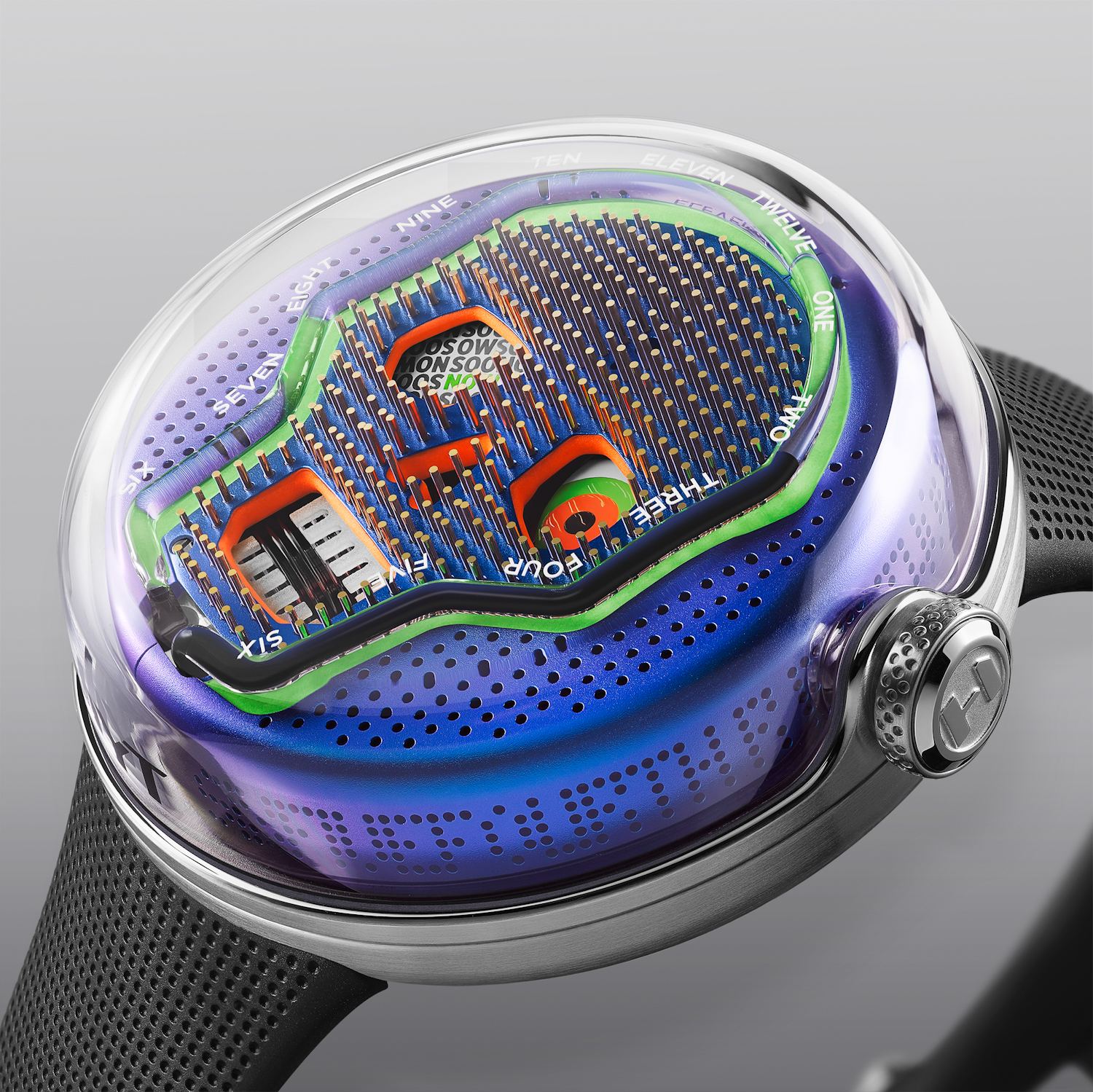 I to właśnie pole magnetyczne jest istotą horroru. Większość zegarków trzeba trzymać od niego z daleka. Jednak wyjątkowość X-Trem-1 polega na jego wykorzystaniu do wskazywania czasu. W centralnej części koperty pracuje klasyczny, ręcznie nakręcany kaliber, który odmierza minuty i godziny wprawiając w ruch linki do których zamocowano mocne magnesy. Linki powstały na bazie polietylenu i każda jest w stanie wytrzymać obciążenie jednego kilograma.