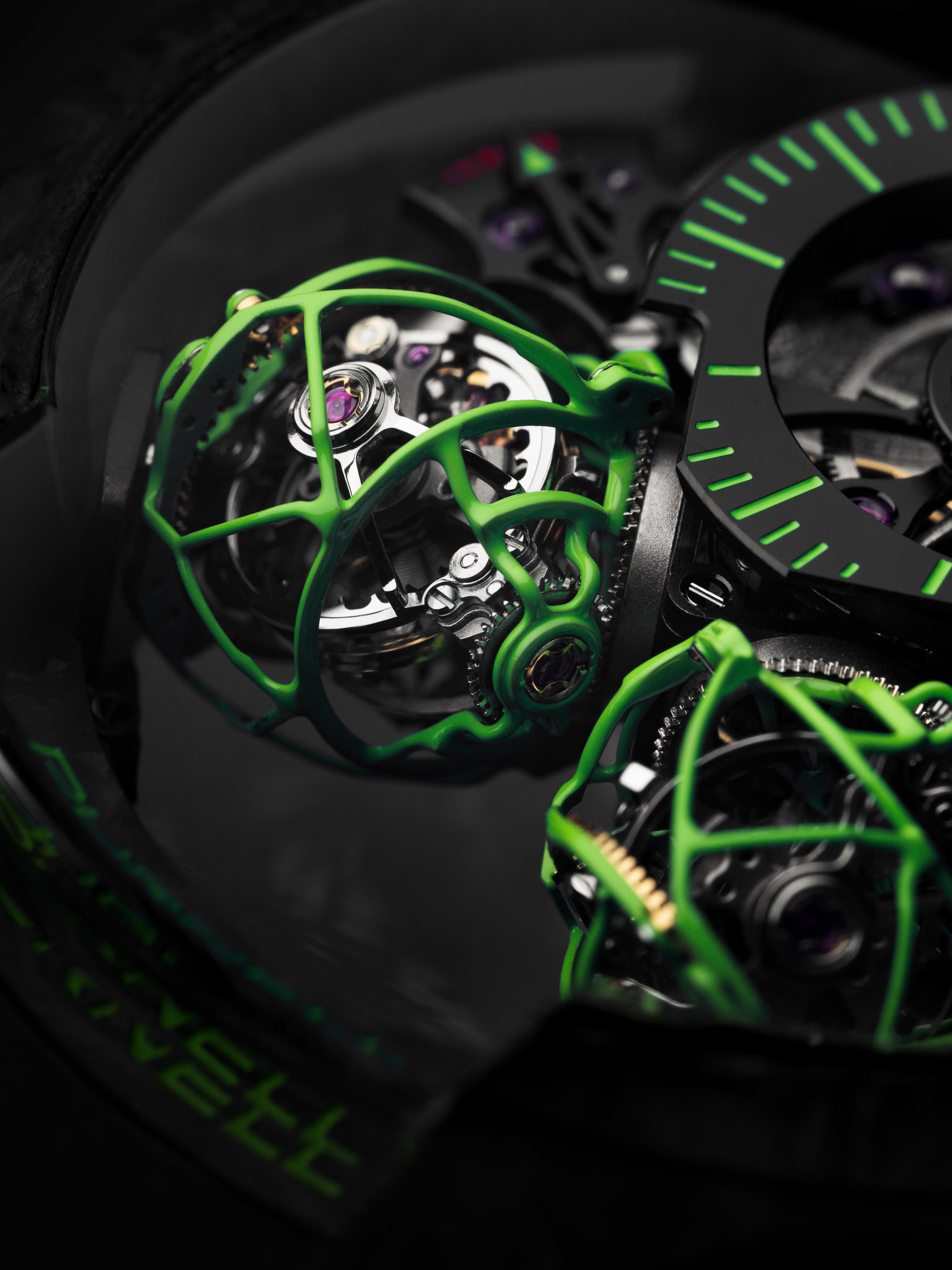 Inne "standardowe" warianty to polerowany tytan zestawiony z różem, tytan w czarnej powłoce DLC z różem i włókno węglowe uzupełnione "elektryczną" zielenią lub zielony, świecący w ciemnościach kompozyt. Te warianty z pewnością dałoby się idealnie połączyć z karbonową karoserią hipersamochodu lub czymś równie szybkim i intensywnym.